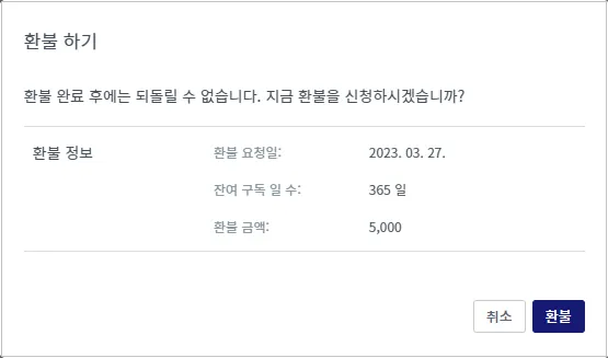 환불을 신청하는 즉시 유료 서비스가 해지되며, 이용 가능 기간이 종료됩니다.