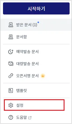 로그인 후, 좌측 사이드 바에서 [설정]을 클릭합니다.