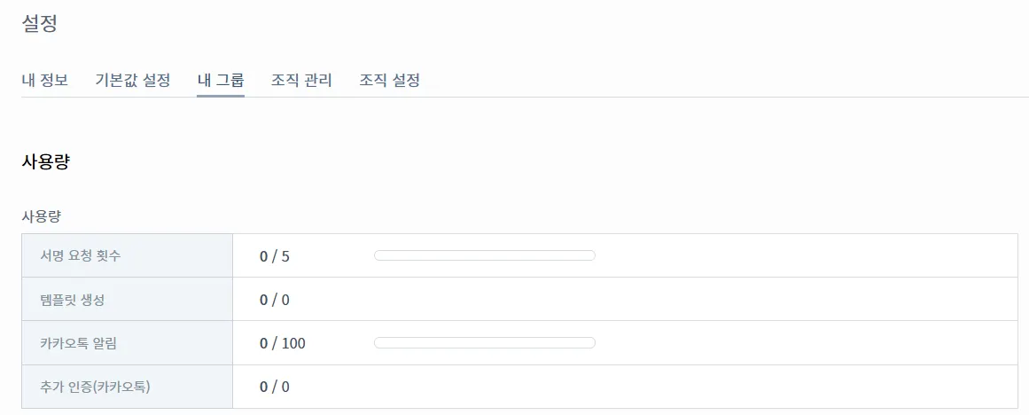 ‘설정’의 ‘내 그룹’ 탭을 클릭하면 개인 사용량을 확인할 수 있습니다.