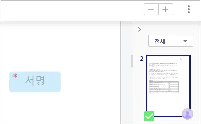 서명 참여자가 서명해야 할 필드와 부분 발송될 페이지가 오른쪽 [개요 보기]에 표시됩니다.