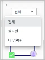 오른쪽 상단의 역삼각형 버튼을 클릭하면, 내가 입력할 필드의 [개요 보기]만 보여줄수 있는 [내 입력란]과 다른 사람의 입력 필드 위치 [개요 보기]까지 표시해주는 [필드만] 메뉴가 있어 입력할 필드가 있는 페이지를 쉽게 확인할 수 있습니다.