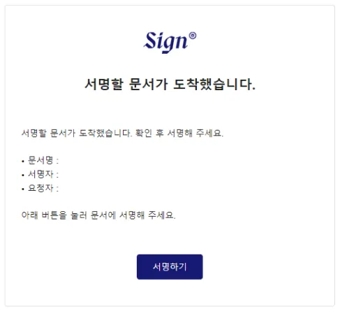 서명 요청 메일의 [서명하기] 버튼을 클릭해 서명 페이지로 이동합니다.