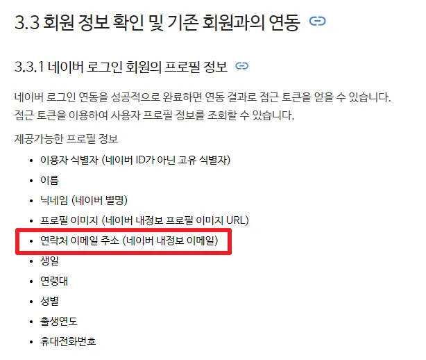 네이버 로그인 회원 정보 확인 및 기존 회원과의 연동에 대한 네이버 로그인 개발 가이드 안내 중
