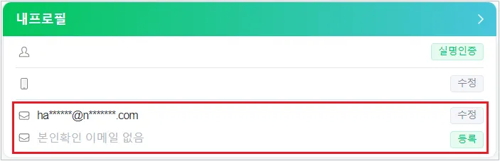 네이버 로그인 시, [내 프로필] 항목에서 해당 사항을 확인할 수 있습니다.