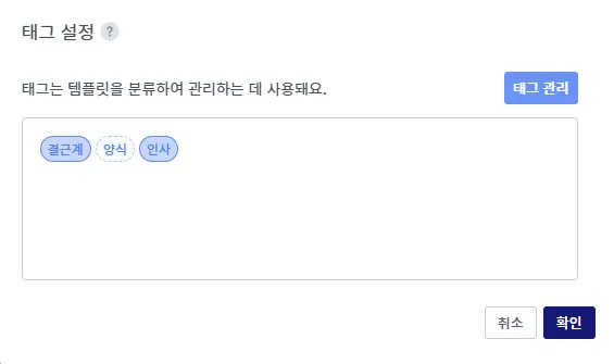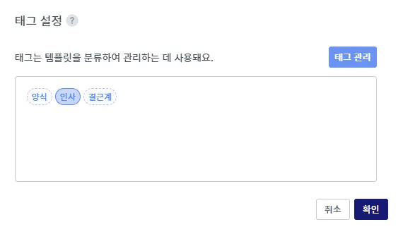 템플릿을 쉽게 관리하고 태그를 지정하여 정리할 수 있습니다. 태그를 사용하면 서명 요청 작업을 생성할 때 문서함에서 문서를 검색할 필요가 없으므로 시간을 절약할 수 있습니다.