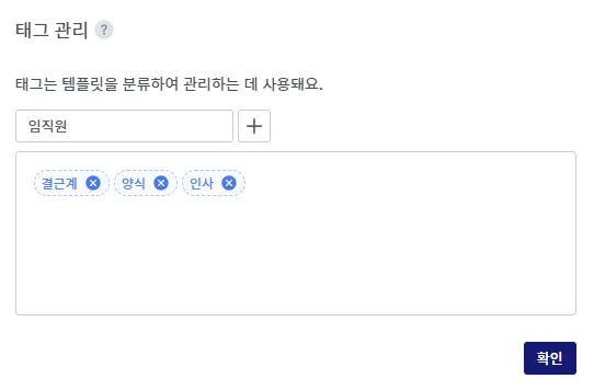 [태그 관리] 대화상자에서 사용하려는 태그를 입력 하고 ‘+’ 버튼을 누르면 입력한 태그가 추가됩니다.