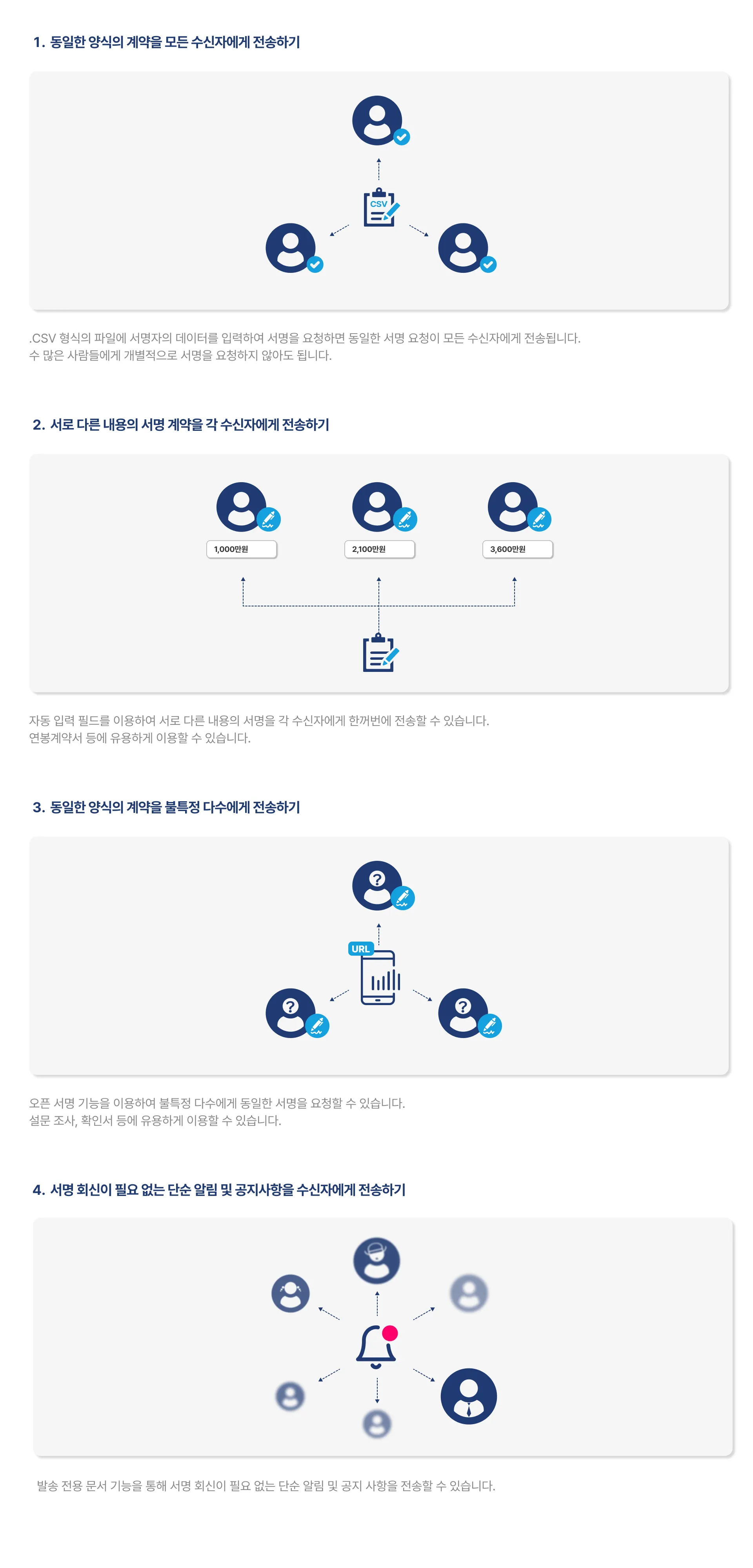 한컴싸인에서는 다음 4가지 종류의 대량 전송 기능을 지원하고 있습니다.