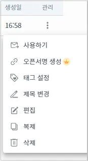 [관리] 탭을 클릭하면 나타나는 [오픈서명 생성]을 클릭합니다.