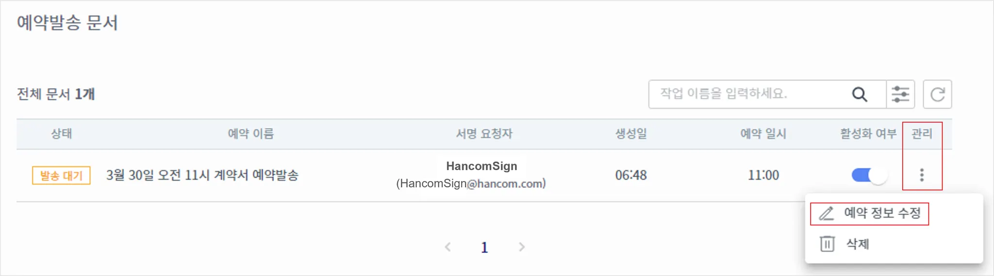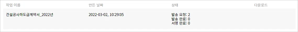[문서함-대량 발송 내역]에서 서명 요청 작업의 발송 상태를 확인할 수 있습니다.