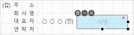 서명 | 서명자가 실제로 서명을 하는 영역으로 전자 서명에서 반드시 필요한 요소입니다. |