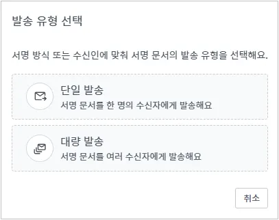 이 대량 전송 기능은 요금제에 따라 최대 100명의 사용자에게 서명 요청을 보낼 수 있도록 지원합니다.