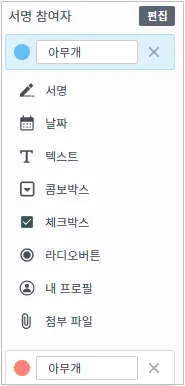 서명 참여자: 문서에 서명할 대상 서명 참여자를 추가합니다.