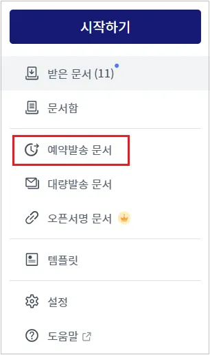 대시보드의 왼쪽 탐색 영역에서 [문서함]을 누릅니다.