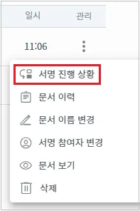 메뉴 목록에서 [서명 진행 상황]을 선택합니다.