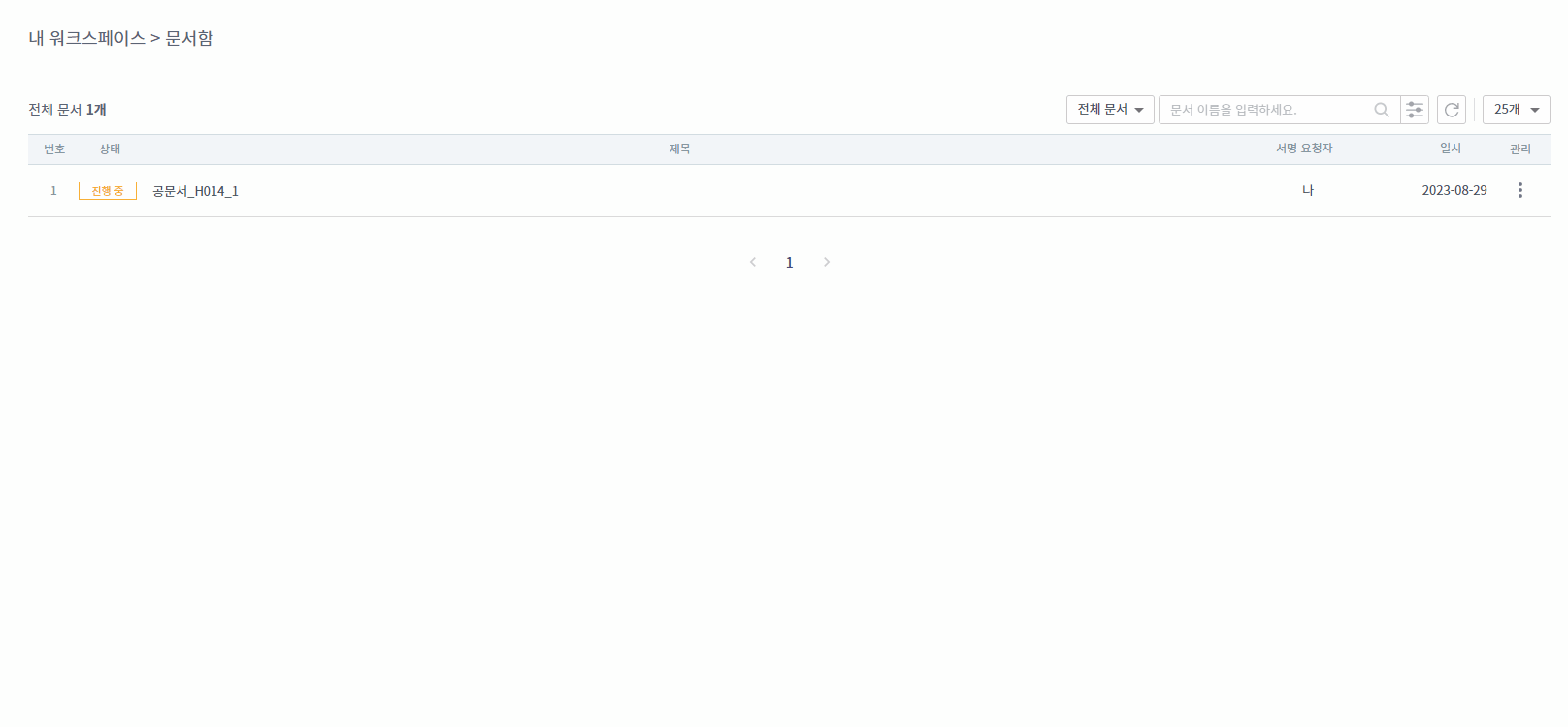 문서함에서 각 문서에 대한 서명 진행 상태를 손쉽게 확인하고 관리할 수 있습니다.