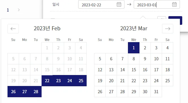 일시 영역을 눌러 시작 및 종료 날짜를 선택합니다.