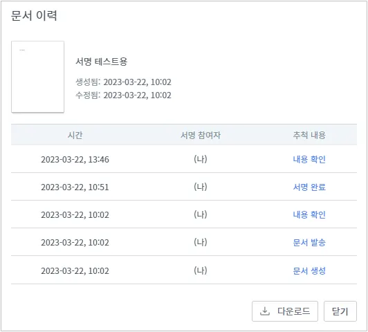 서명 완료 문서의 이력 정보 확인 및 다운로드