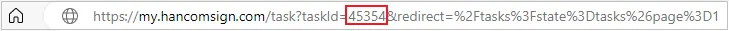 웹 브라우저 주소 표시줄에서 "taskId=" 뒤의 숫자를 확인합니다. 다음 문서의 작업 ID는 45354입니다.