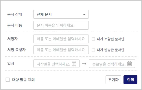 이 때 검색 기능을 사용하여 제목, 서명자 또는 이메일 주소로 원하는 문서를 정확하게 검색할 수 있습니다. 또한 특정 기간을 지정하여 보다 편리하게 원하는 문서를 찾아낼 수 있습니다.