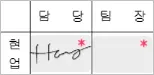 하나 이상의 필드가 포함된 서명 문서가 표시됩니다. 필드 오른쪽 상단의 빨간색 * 아이콘은 서명 작업 중 반드시 입력해야 하는 필수 필드입니다.