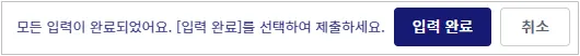 서명 요청자가 지정한 모든 필드에 서명 또는 값을 입력하면 우측 하단에 ‘모든 입력이 완료되었어요. [입력 완료]를 선택하여 제출하세요.’라고 메시지가 출력됩니다.